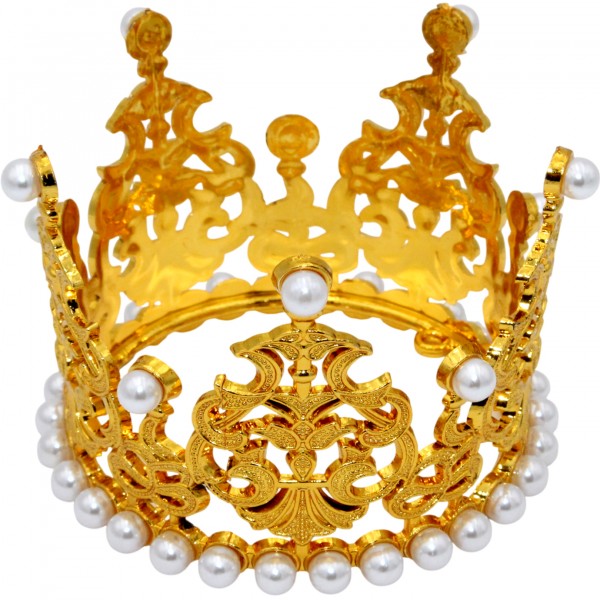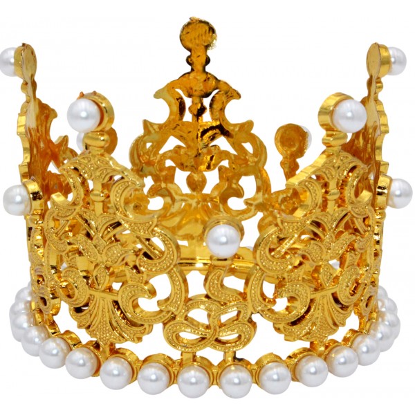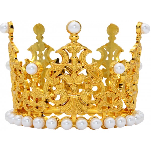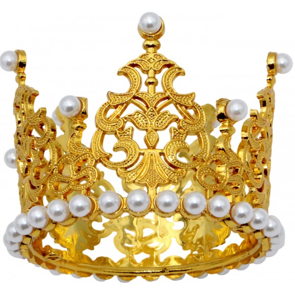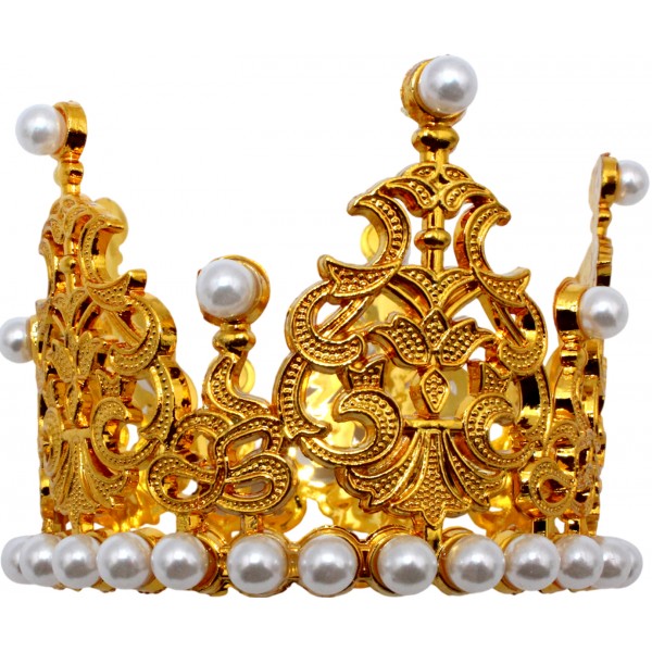 Корона пластм. мал. золото з білим камінням 7х5см №16590
