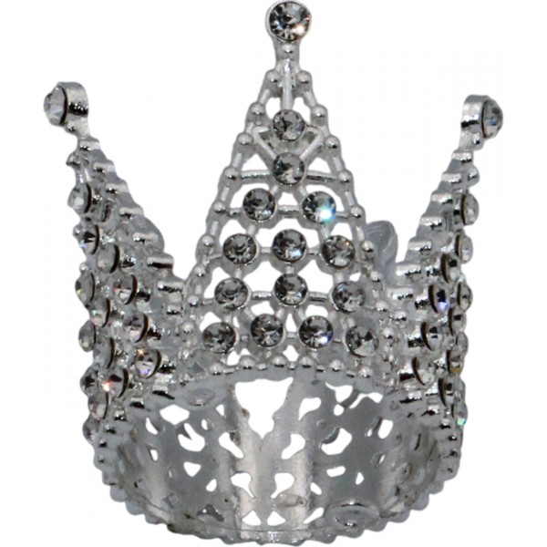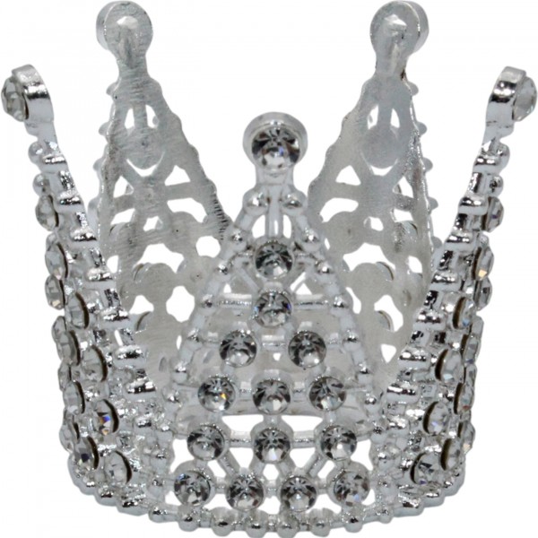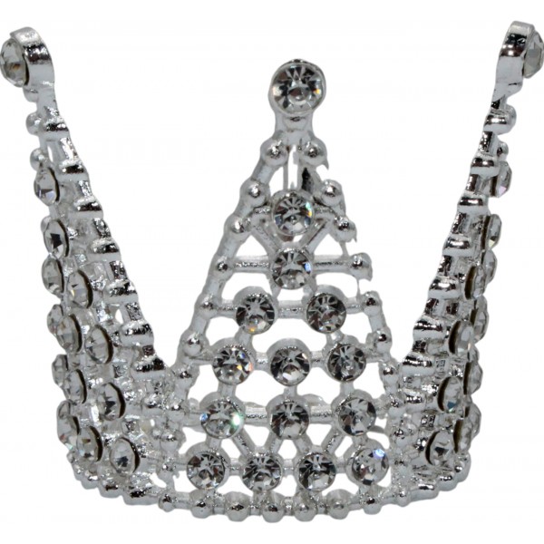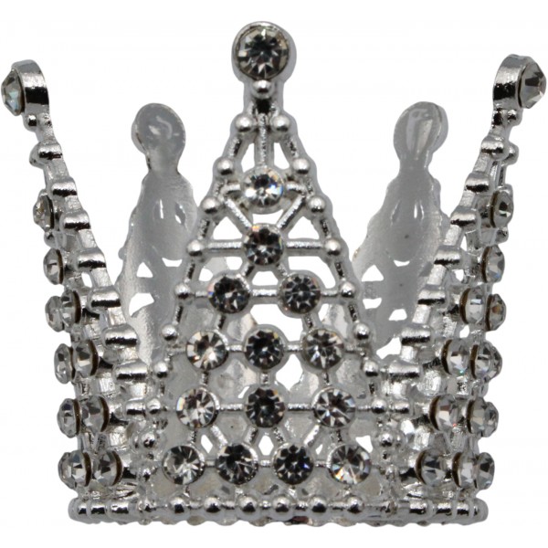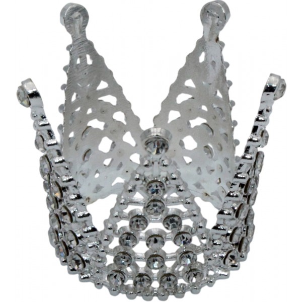 Корона метал. міні срібло з білим камінням 3х3,2см №16602