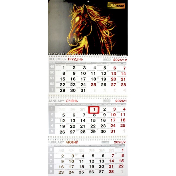 Календар кварт. настін. 2026,3 пружини BM.2105.1/Buromax/(20)