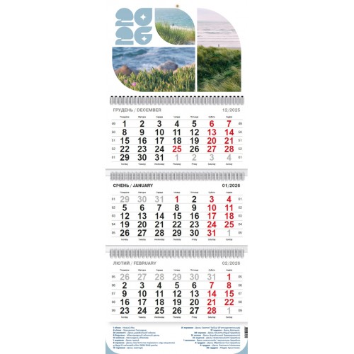 Календар кварт. настін. Пляж 2026 ,3 пружини