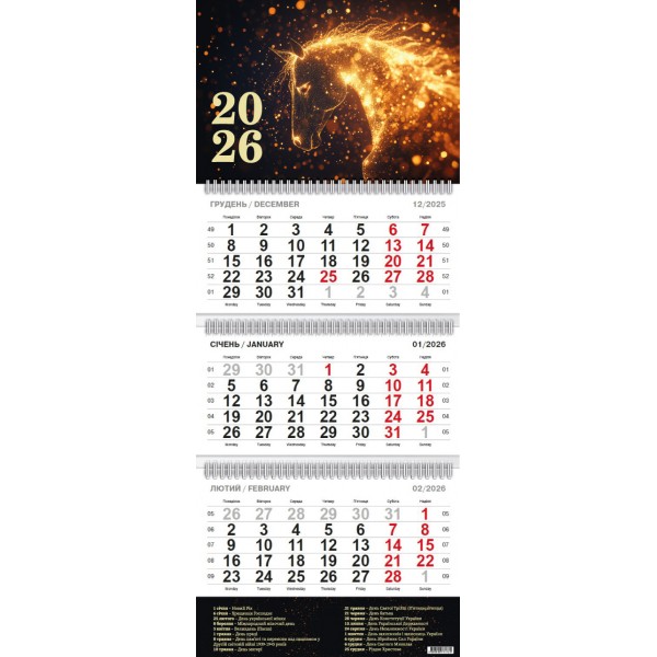 Календар кварт. настін. Зимовий кінь 2026 ,3 пружини