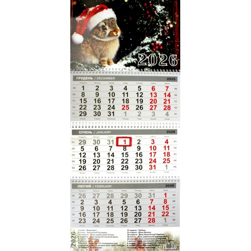 Календар кварт. настін. Кролик 2026 ,3 пружини