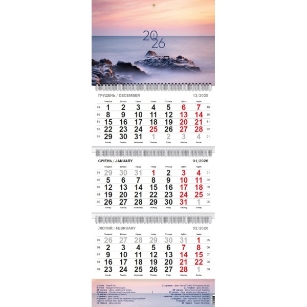 Календар кварт. настін. Маяк 2026 ,3 пружини