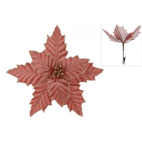 Пуансетія 18см на кліпсі,персикова №333-524/Bonadi/