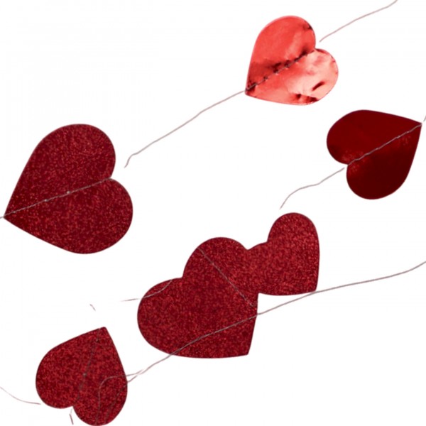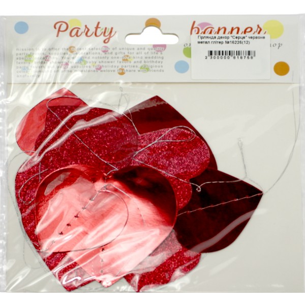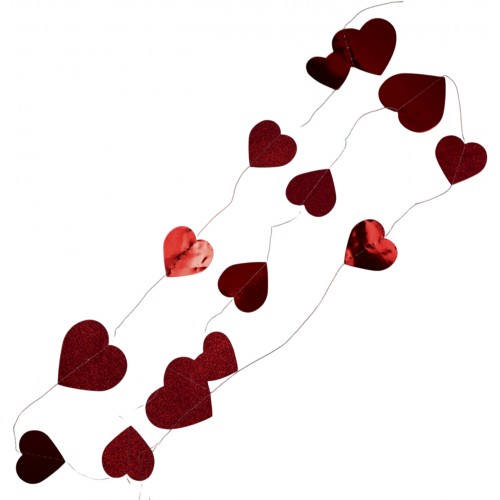 Гірлянда декор "Серце" червоне метал глітер №16226(12)