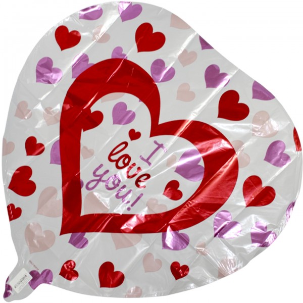 Кулька повітр. фольг. "Серце I love you з мал. серц." біло-черв. 18см№QQlY-B0639/13765(50)