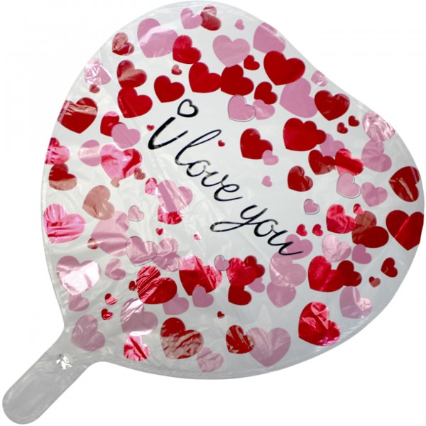 Кулька повітр. фольг. круг. "Серце з серцями та I love you" біл. з черв.-рожев. 18см№13767