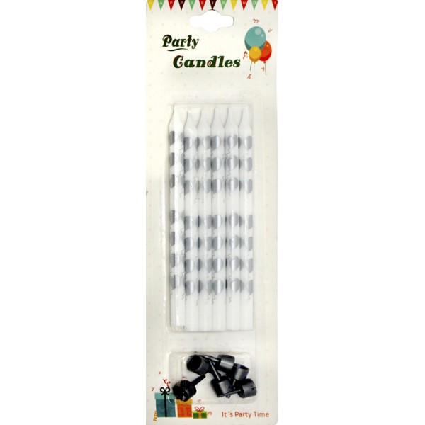 Свічка в торт 6шт+6підсв. "Кульки срібні" біла №3950(24)