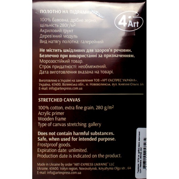 Підрамник 18х24см 4Art зерно,акрил,бавовна GPA1891824