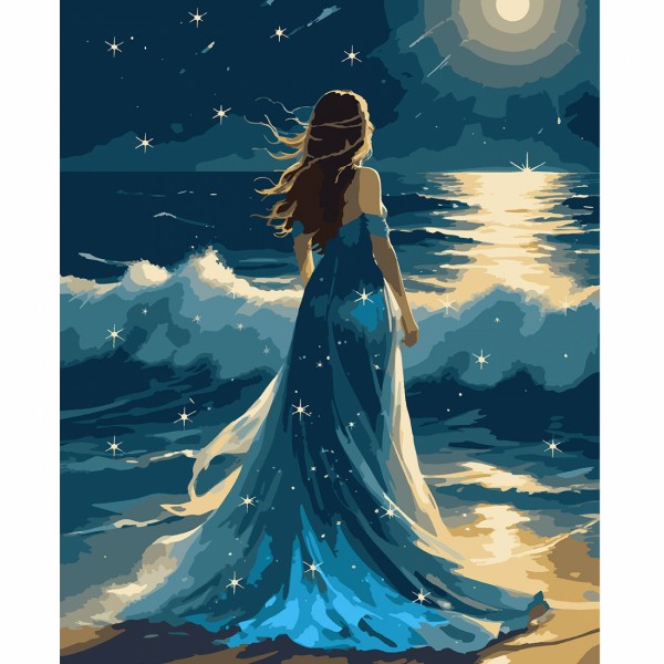 Картини по номерах Дівчина і хвилі ночі 40х50см,LED підсвітка 955105/Santi/(30)