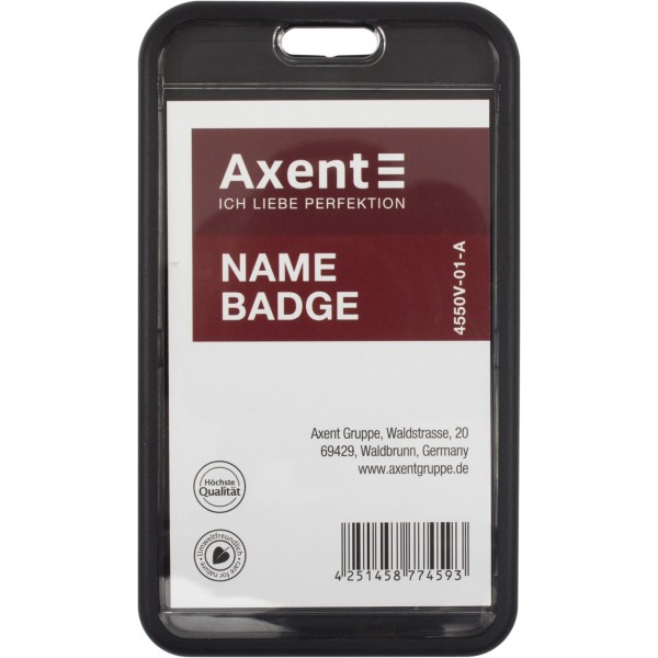 Бейдж-чохол Axent SoftTouch 4550V-01-A вертик. 54x85мм,матовий чорний(5)(50)