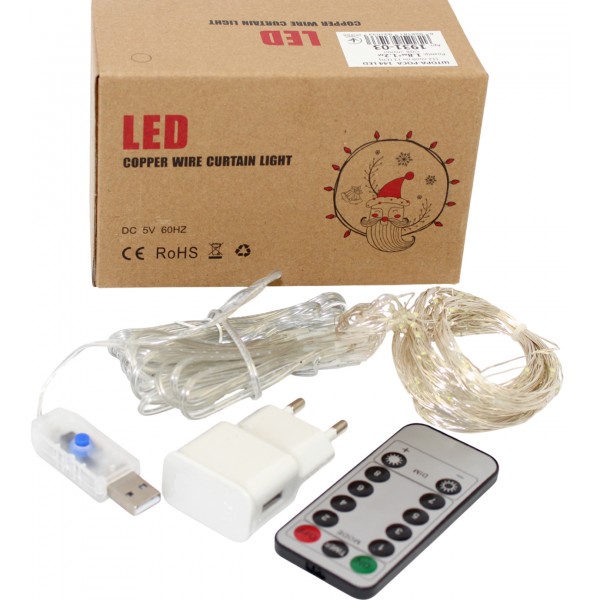 Новорічні електричні гірлянди Гірлянда-штора електрична Роса 144 LED USB, пульт, bluetooth, біла L-1,8 H-1,2 м 1931-03