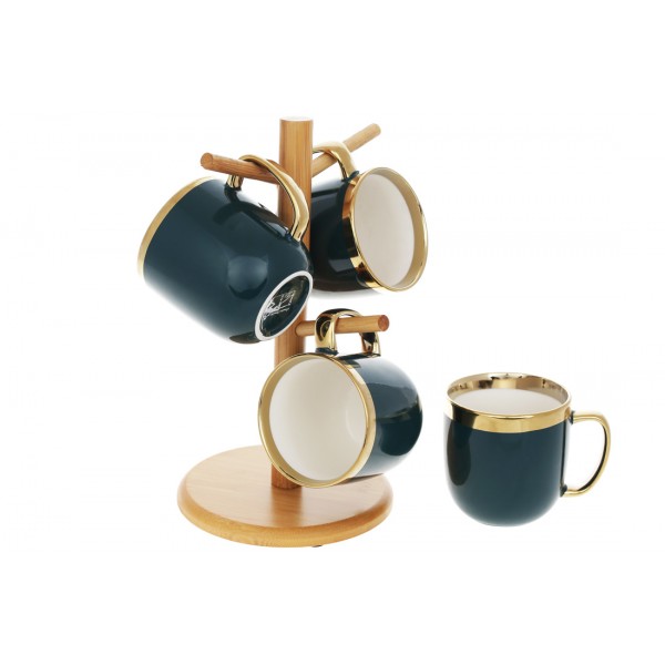 Набір чашок керам. (4шт) 320мл "Золота лінія"на бамбуковій підставці,темно-зелений№905-233
