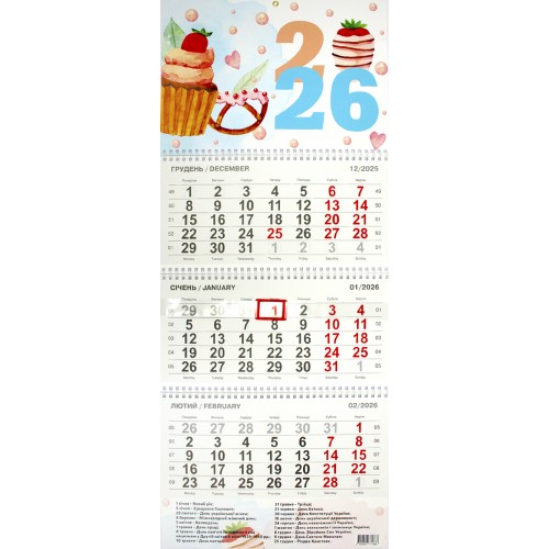 Календар кварт. настін. Десерти 2026 ,3 пружини
