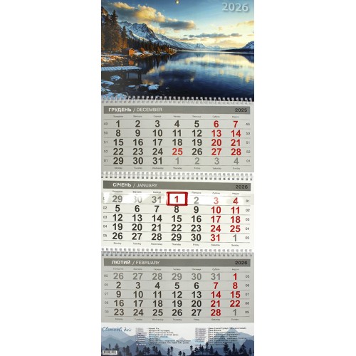 Календар кварт. настін. Засніжені гори 2026 ,3 пружини