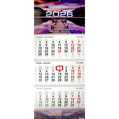 Календар кварт. настін. Бузковий світанок 2026 ,3 пружини