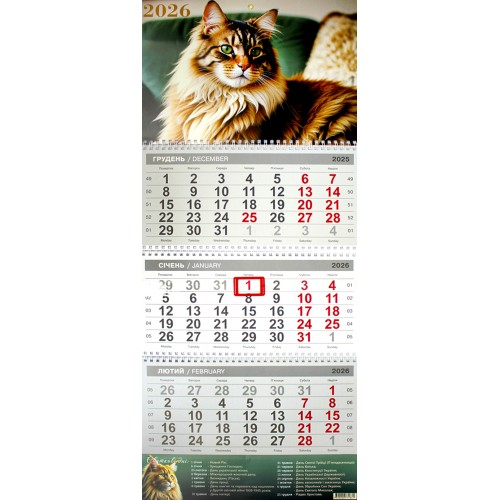 Календар кварт. настін. Мейн-Кун 2026 ,3 пружини