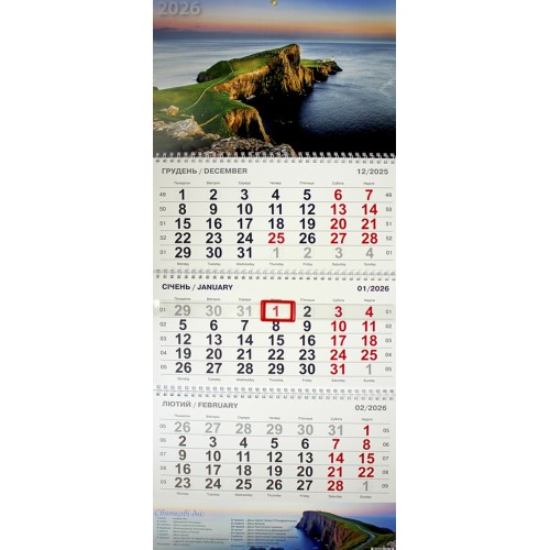 Календар кварт. настін. Мис 2026 ,3 пружини