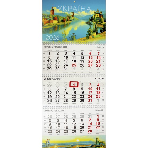 Календар кварт. настін. Україна 2026 ,3 пружини