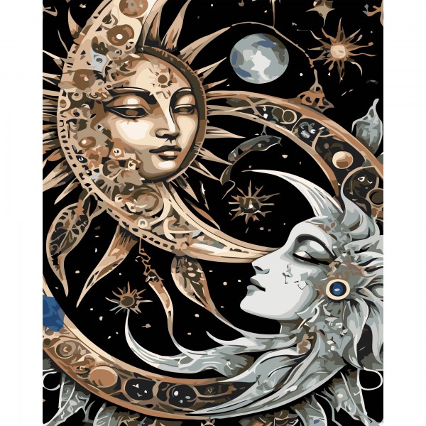 Картини по номерах "Сонце і Місяць" 40х50см на чорному фоні №AH1238/Strateg/