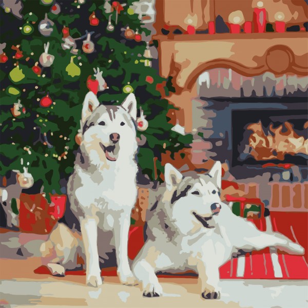 Картини по номерах "Хаскі біля каміну" 40х40см №FF-1004/Strateg/