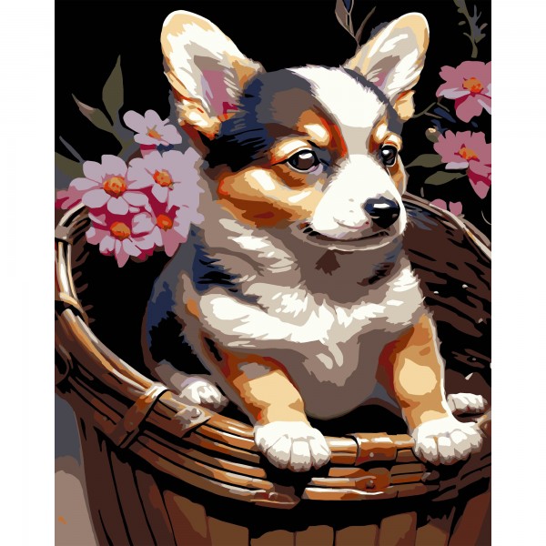 Картини по номерах "Цуценя у кошику" 40х50см на чорному фоні №AH1220-19/Strateg/