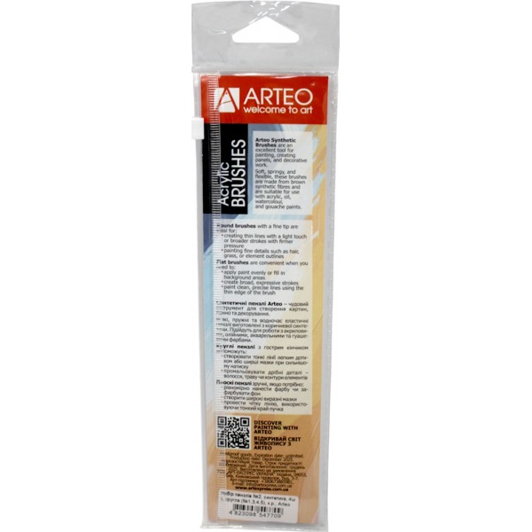 Набір пензлів худож. 4шт "Arteo" №187103 (синтетика кругла №1,3,4,плоска №8)