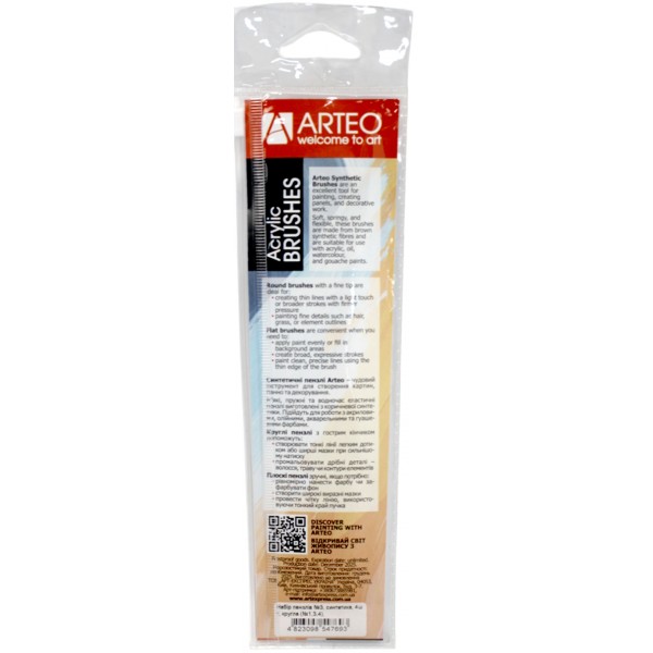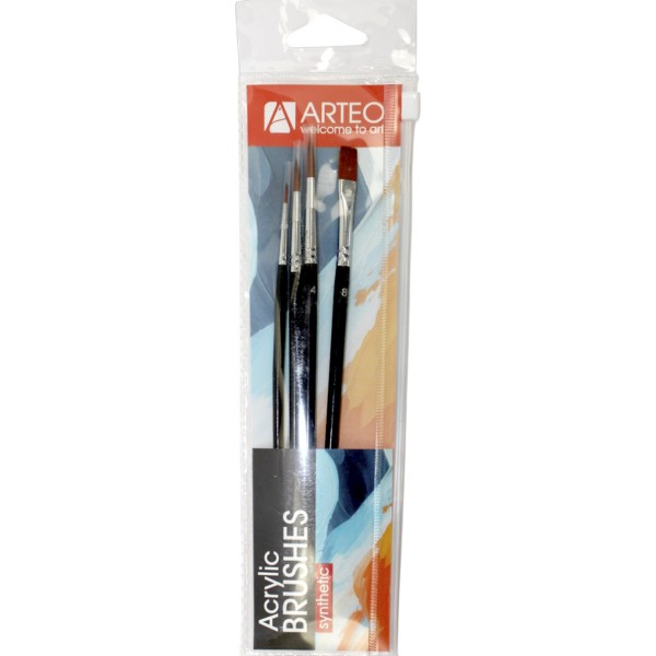 Набір пензлів худож. 4шт "Arteo" №187103 (синтетика кругла №1,3,4,плоска №8)
