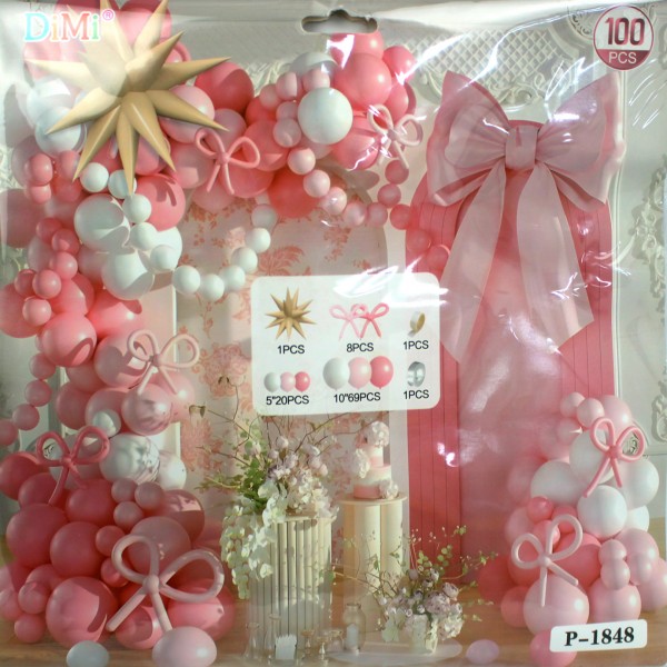 Набір кульок повітр. для фотозони "Рожевий з бантиками" №QQL-1848(10)