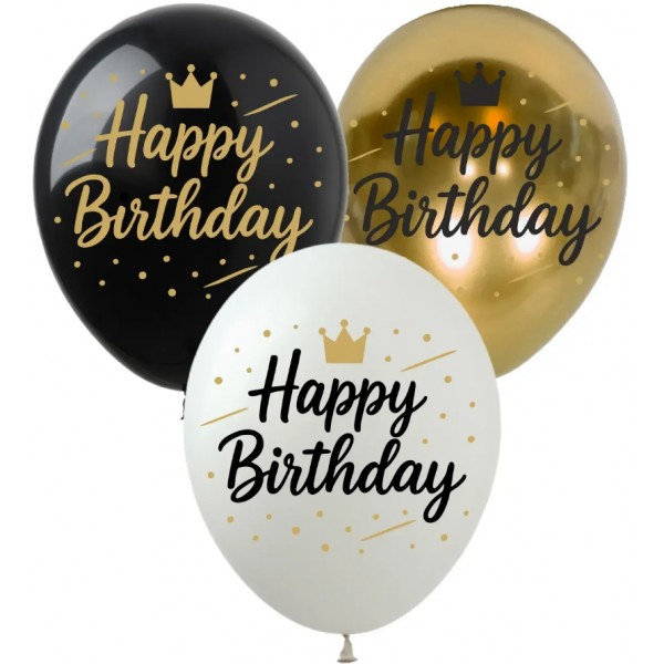 Кулька повітр. латексна 12"/30см "Happy Birthday" корона золота №SDR-158/Art Show/(50)