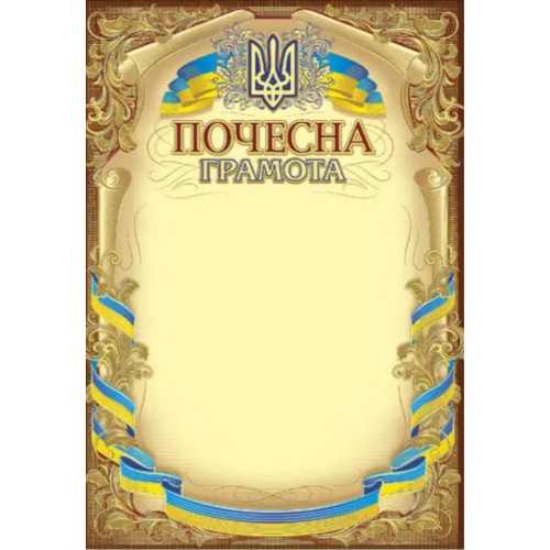 Почесна грамота А4 офіційна Г-744 №0102/Фоліо/