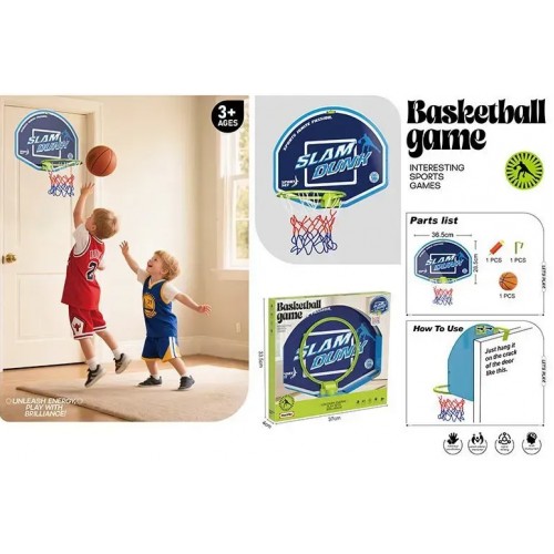 Баскетбольний набір,м'яч,кошик,гачок для кріплення,насос,в кор-ці,37х4х33см №A-1V12(36) КІ