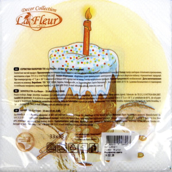 Серветки столові ТМ "La Fluer" 2-х шарові (16шт) Воскресне свято(16)