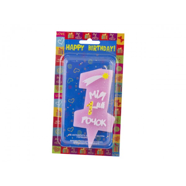 Свічка в торт цифра 1 Мій перший рочок рожева (українською) (12)