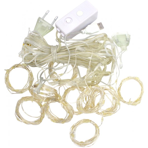 Гірлянда-водоспад електрич. 200LED білий,L-3м H-2м реле 8режимів USB 1564-03(30)