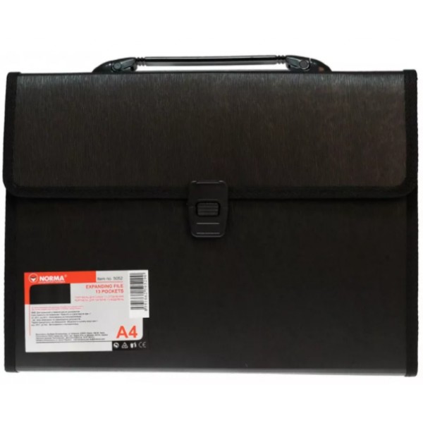 Папки, портфелі пластикові Портфель Norma А4 13 відділень з реєстрами чорний 5052 Norma