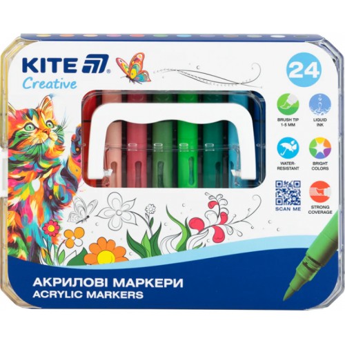 Набір маркерів акрил. "Kite" Creative №K-1162 24шт з рідкими чорнилами