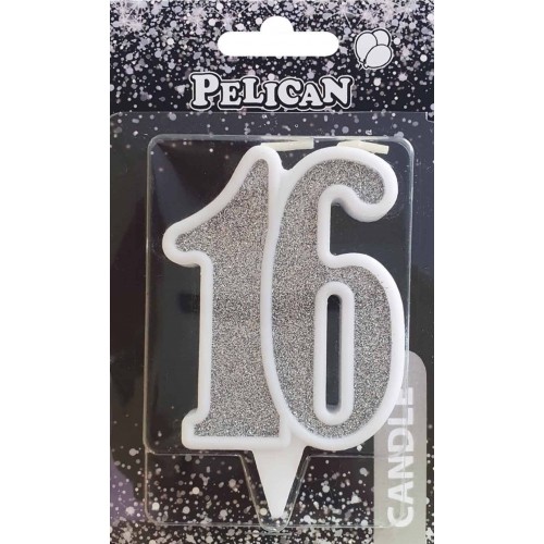 Свічка ювілейна "16" 7см срібло №867216/Pelican/(1)(32)