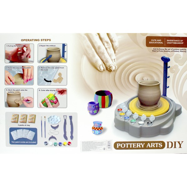 Набір для творч.гончарне коло/гончарний круг,глина,фарби,інстр.,формочкив кор-ці47х31х7см
