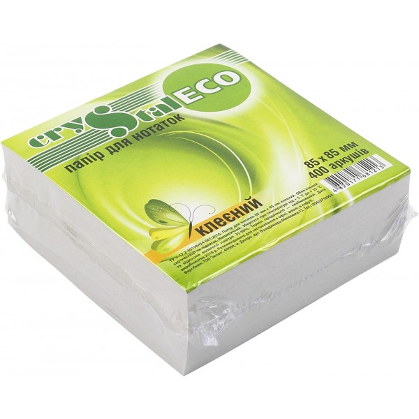 Блок для заміток клеєний 85х85мм 400 аркушів Crystal ECO Crystal