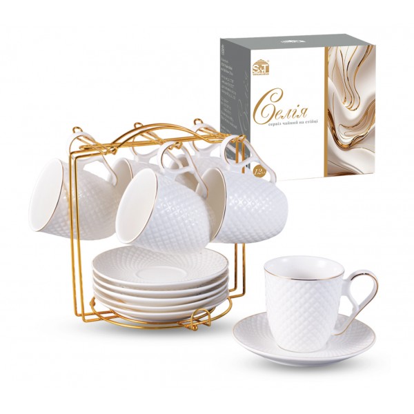 Сервіз чайний керам. 12предм. (6чаш. 200мл+6бл. 14см) "Селія" на стійці №15222-00/S&T/(8)