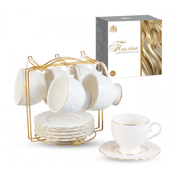 Сервіз чайний керам. 12предм. (6чаш. 260мл+6бл. 14см) "Перліта" на стійці №15220-00/S&T/(8