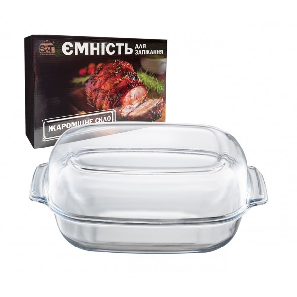 Форма для запікання з кришкою та ручками 34х23х9см скло прямокут. №50018-01/S&T/(12)