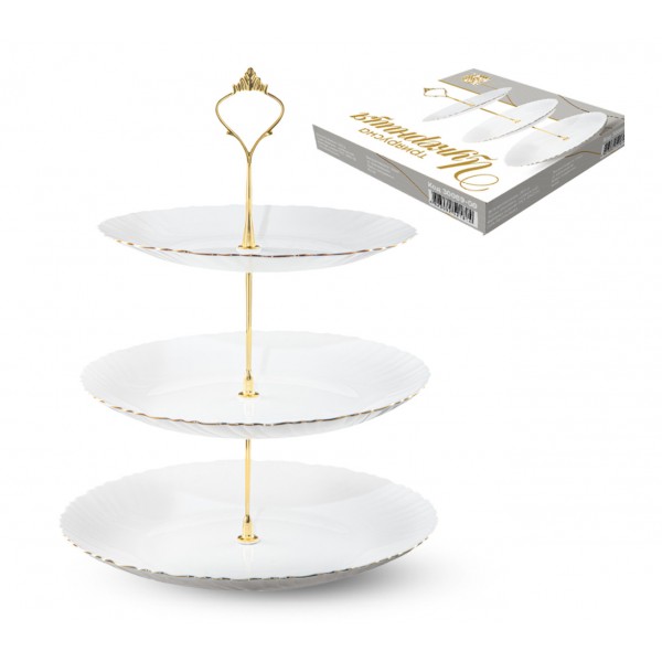Цукерниця керам. 3-х ярусна золотий кант, біла 10',9',8' №30089-00/S&T/(6)