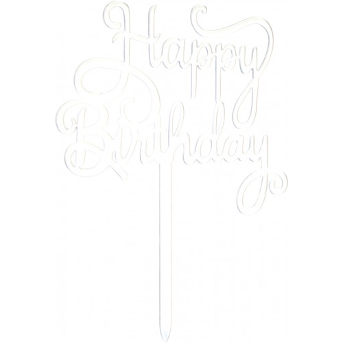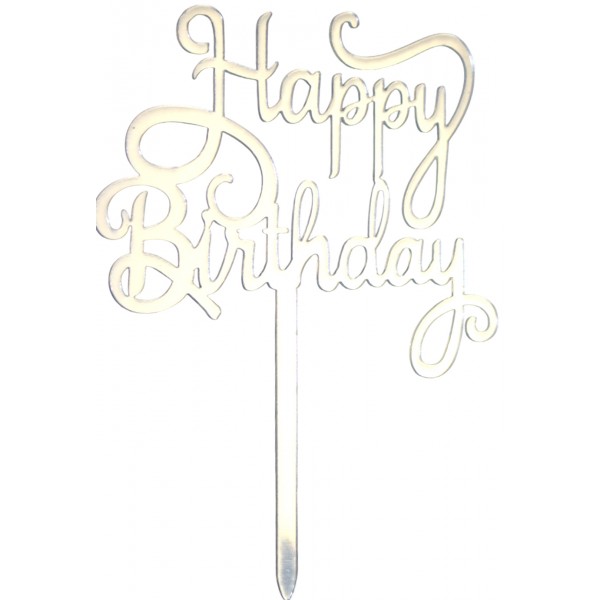 Топер для торта "Happy Birthday" срібло