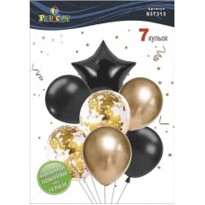 Набір кульок повітр. латексних 12"/30см "Зірка,чорно-золотий з хромом" 7шт №837313/Pelican