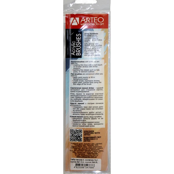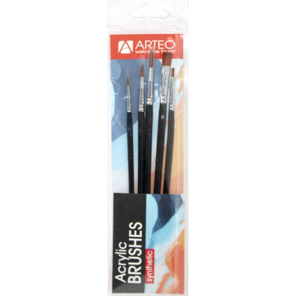 Набір пензлів худож. 5шт "Arteo" №187104 (синтетика кругла №1,3,4,плоска №4,8)