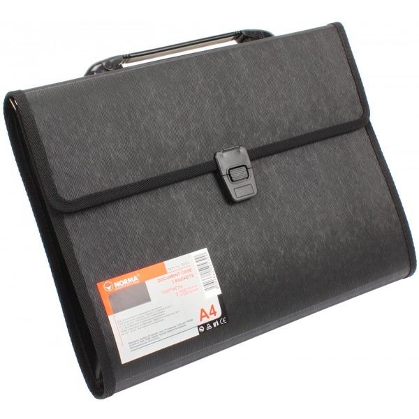 Папки, портфелі пластикові Портфель Norma A4 3 відділення чорний 5053 Norma