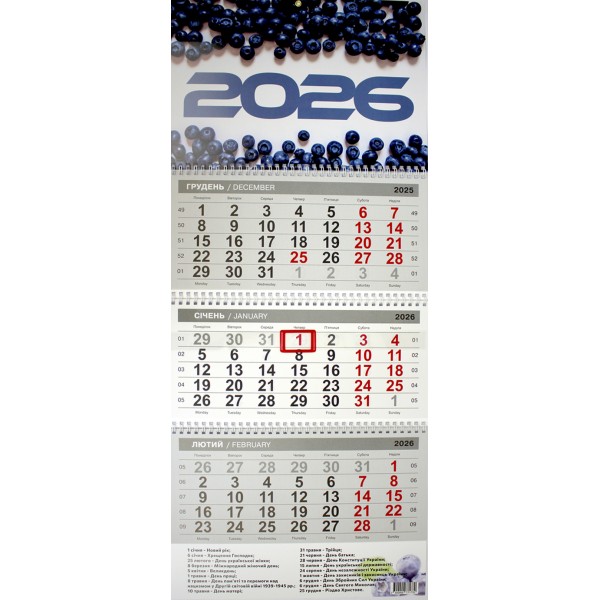 Календар кварт. настін. Лохина 2026 ,3 пружини