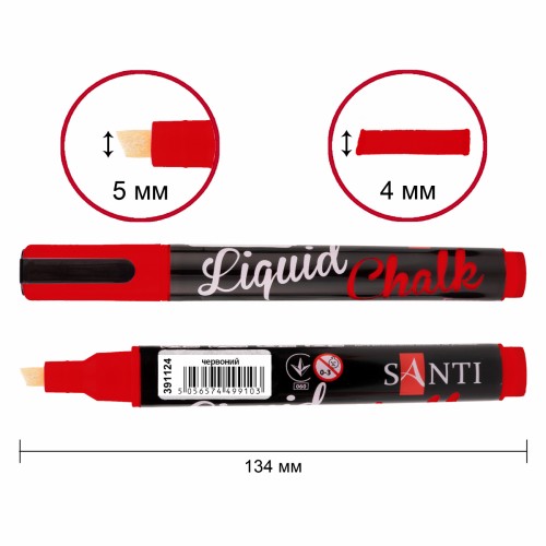 Маркер крейдовий "Santi" №391124 червоний 5мм(6)
